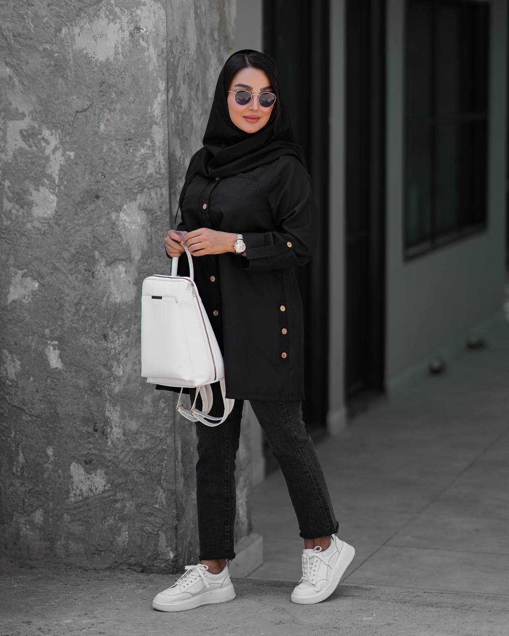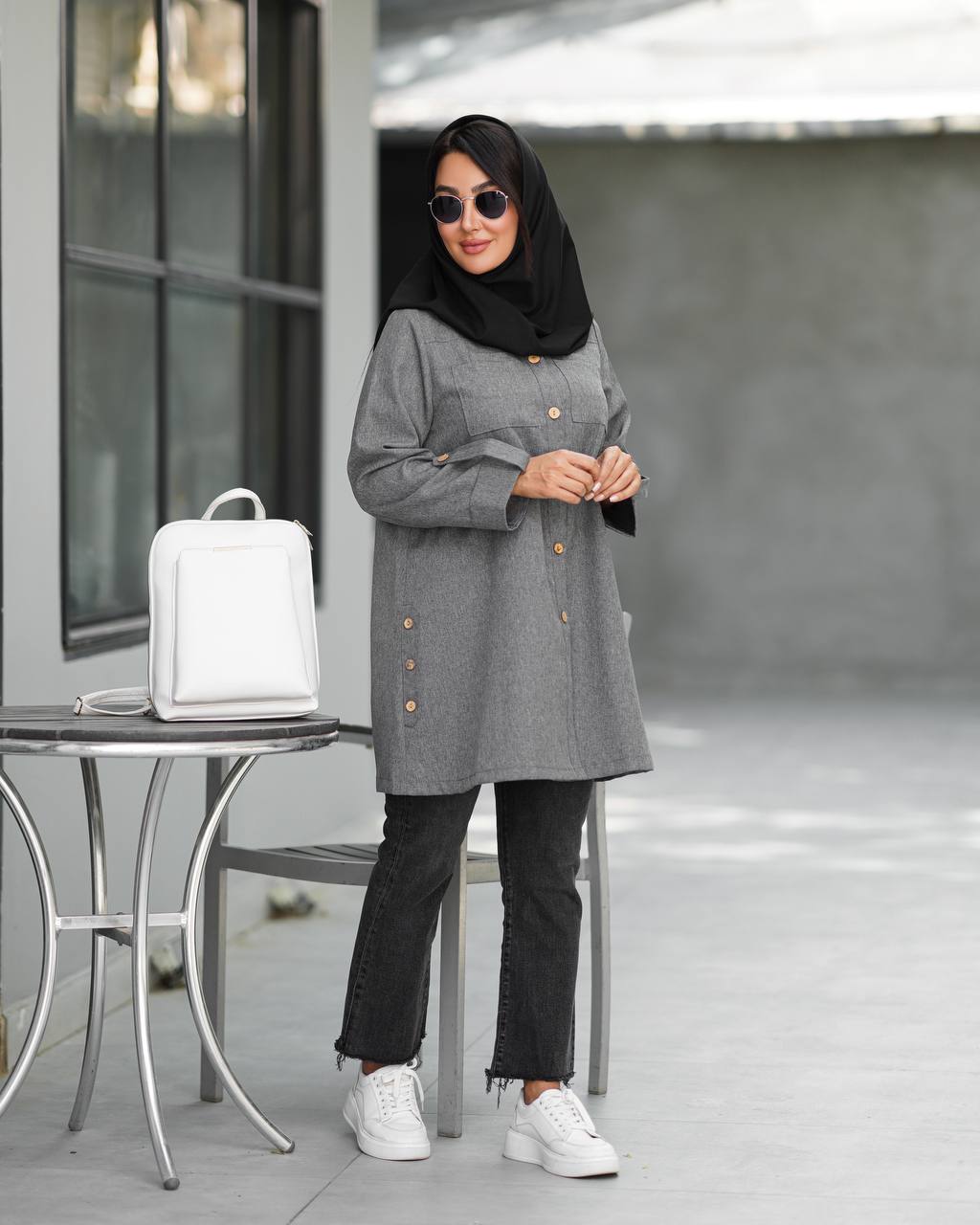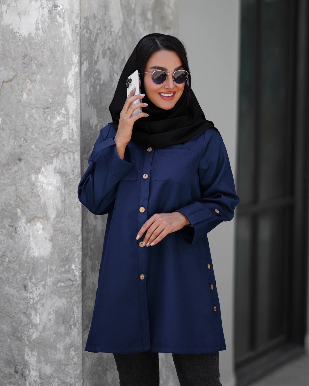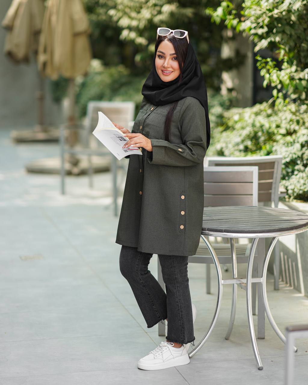 ✅مانتو دانشجویی کوتاه پرشیا بغل دکمه زنانه مدل چهرک کد ۱۵۴